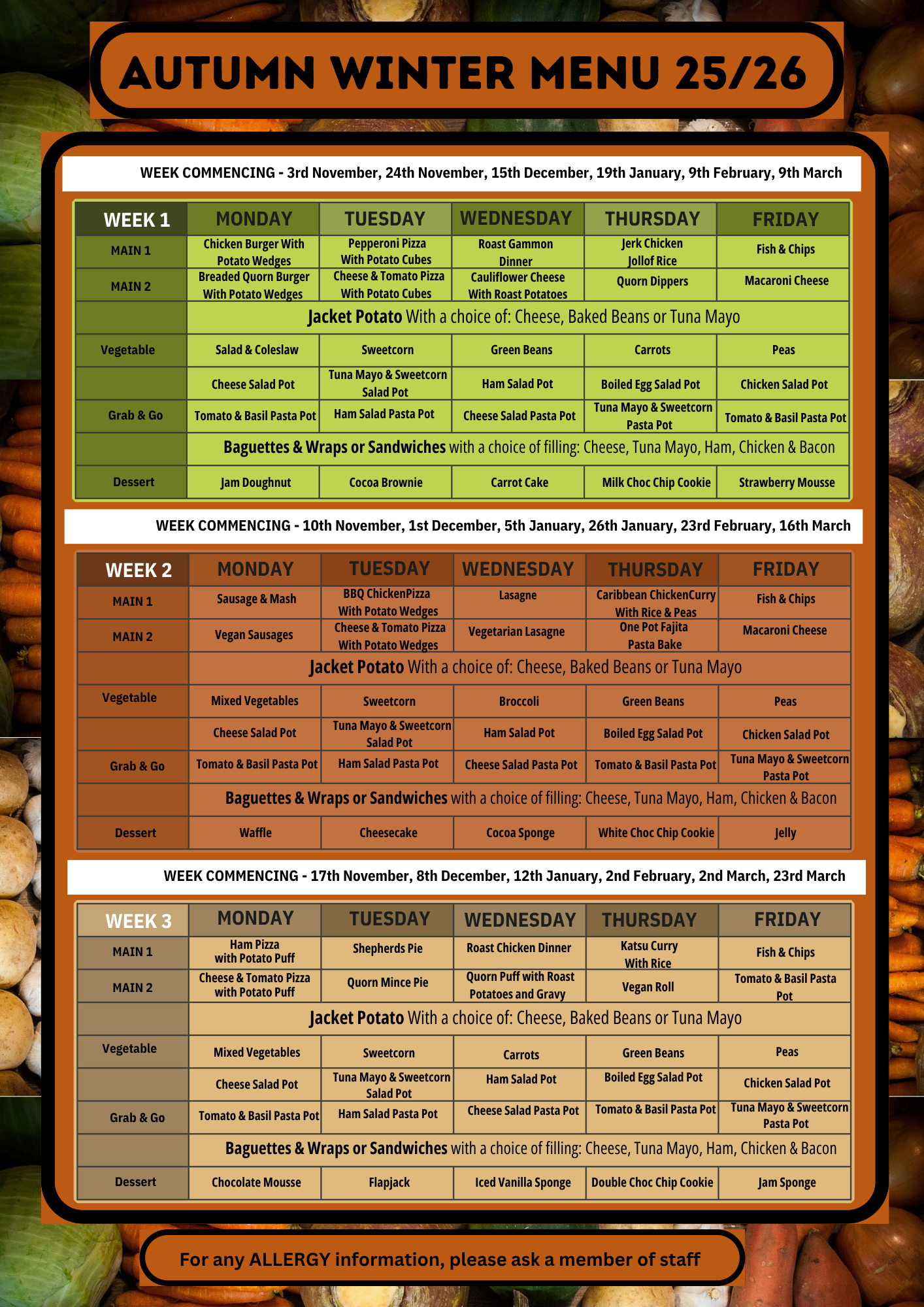 Lunch Menu - Autumn/Winter 2025/2026